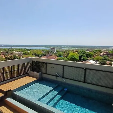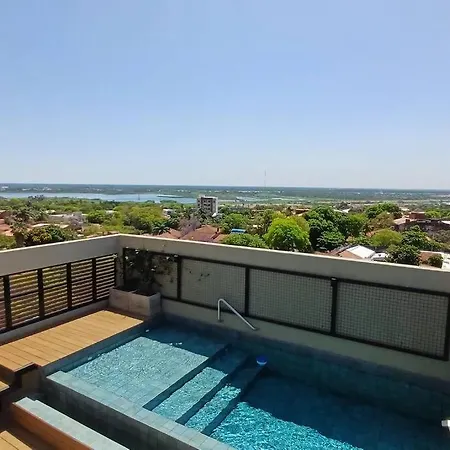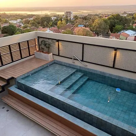 The Station Las Mercedes 404 Asuncion apartment provides easy access to various city attractions, such as Nicolas Leoz Stadium, situated only a 5-minute walk away. Guests can lounge by a rooftop swimming pool before taking a cooling dip.